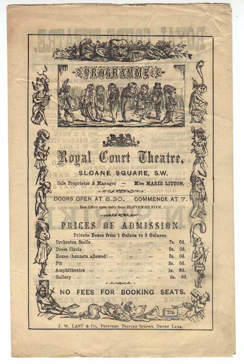 Royal Court Theatre, 1873 with About Town/On Strike. Two