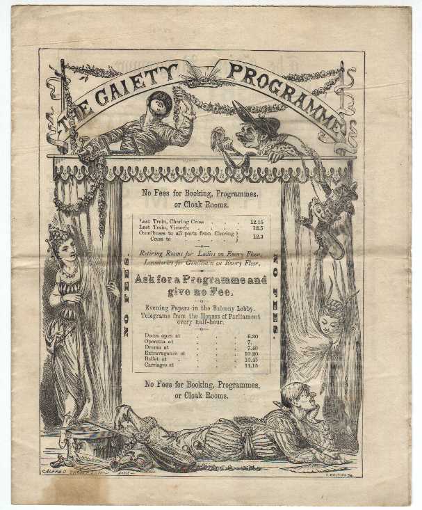 Savoy Theatre, 1884. Two page pink paper programme for an early