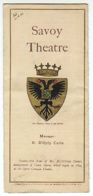 D'Oyly Carte's Season of Gilbert and Sullivan Operas, Savoy Theatre,