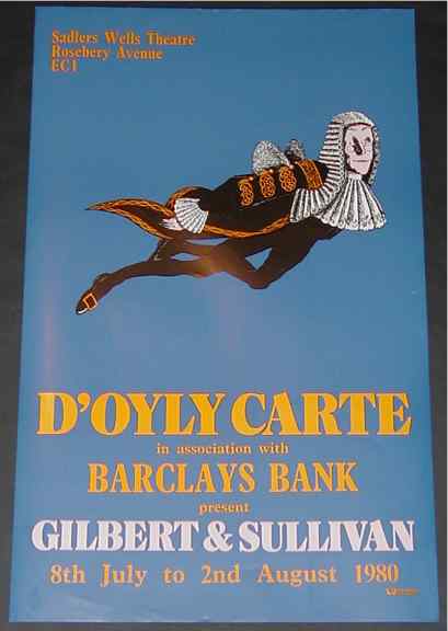 PO140. DOyly Carte Sadlers Wells Theatre, 1979/1980 Poster featuring a flying fairy Lord Chancellor on a deep blue background for the London season 18th December 1979 to 16th February, 1980 at Sadlers Wells. Dimensions: 12½" x 20" .....£30.00